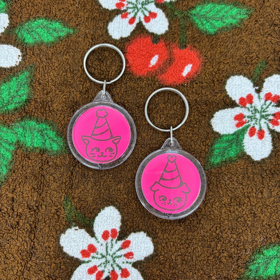 Juhlahattu avaimenperä ✸ pyöreä pinkki